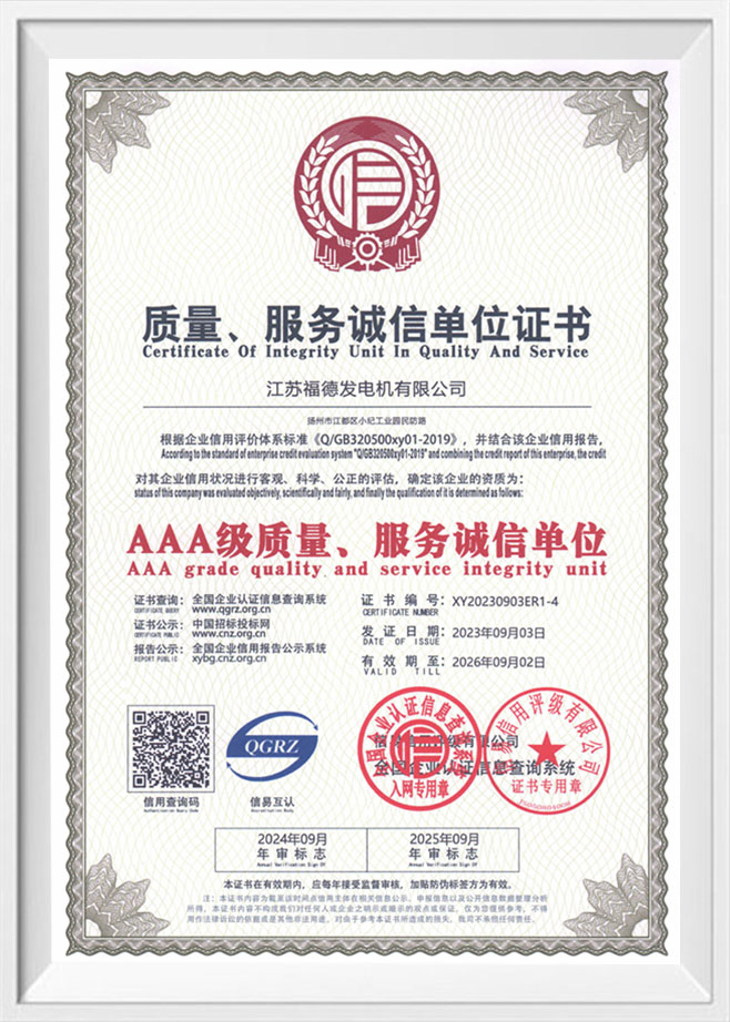 গুণমান এবং পরিষেবাতে সততা ইউনিটের শংসাপত্র